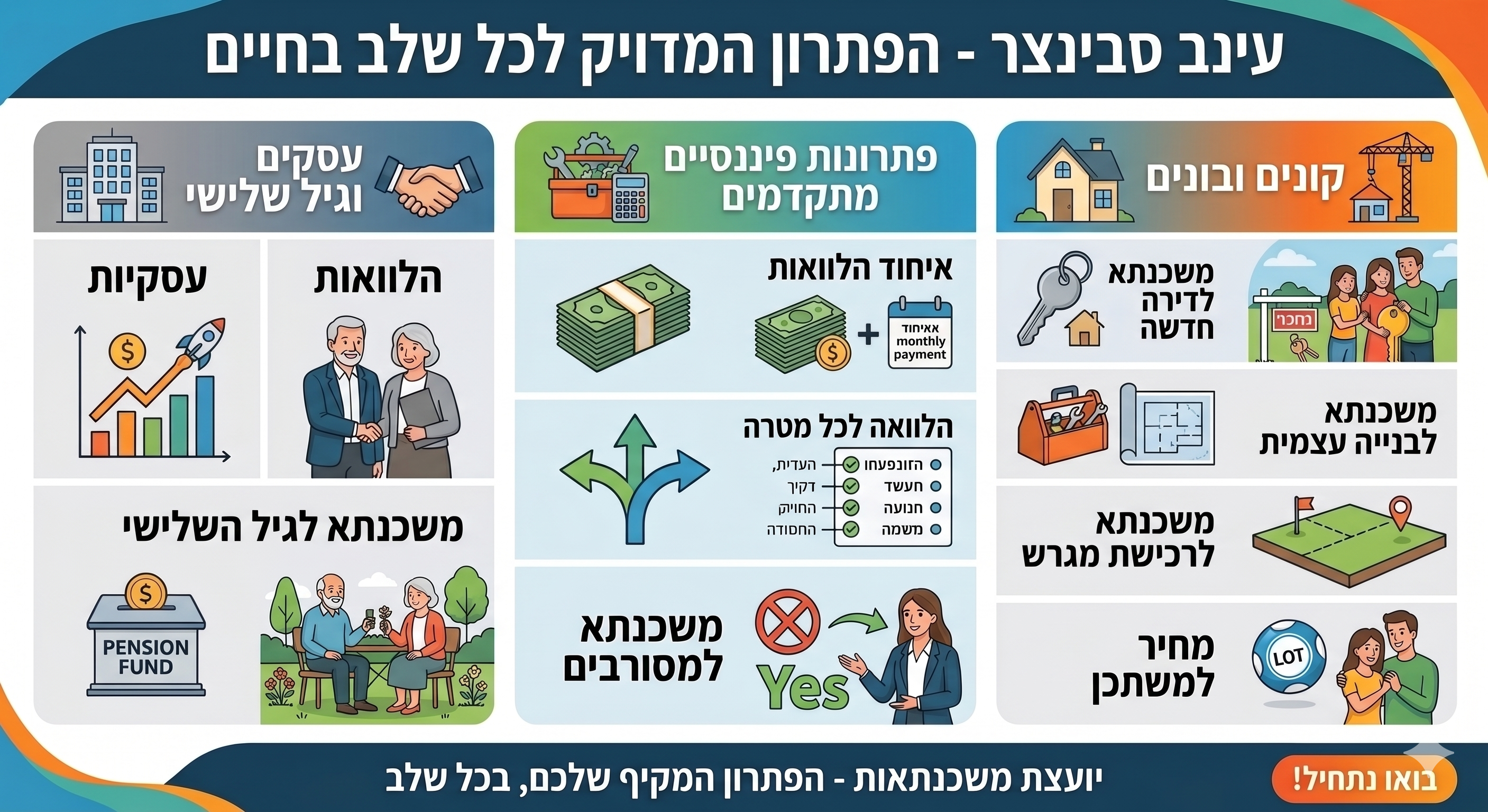 תכנון תפור למידותיכם: בניית תמהיל שמתחשב במספר הילדים, הגיל שלכם, צפי עליית השכר ותוכניות עתידיות. המשכנתא צריכה להתאים לחיים שלכם, לא להיפך.